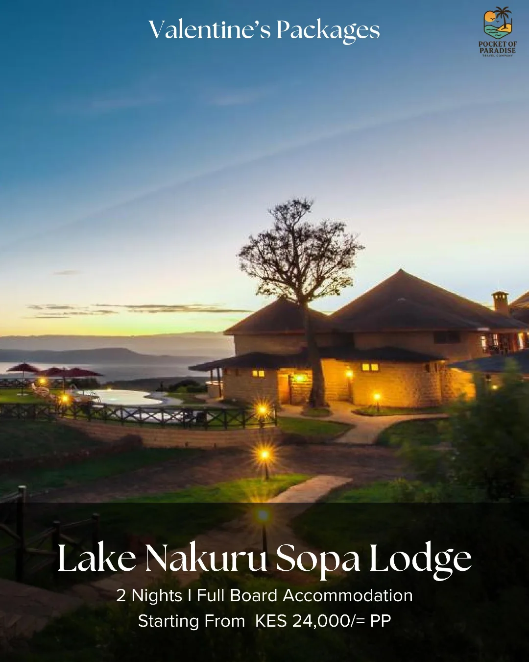 Experience the magic of the Great Rift Valley this February! Escape to the stunning Lake Nakuru Sopa Lodge for a romantic getaway that blends luxury with the wild. Perched on a range of hills, you’ll enjoy breathtaking views of the lake and unforgettable sunsets with your special someone. 🌹 The Valentine’s Special Book your romantic escape today!