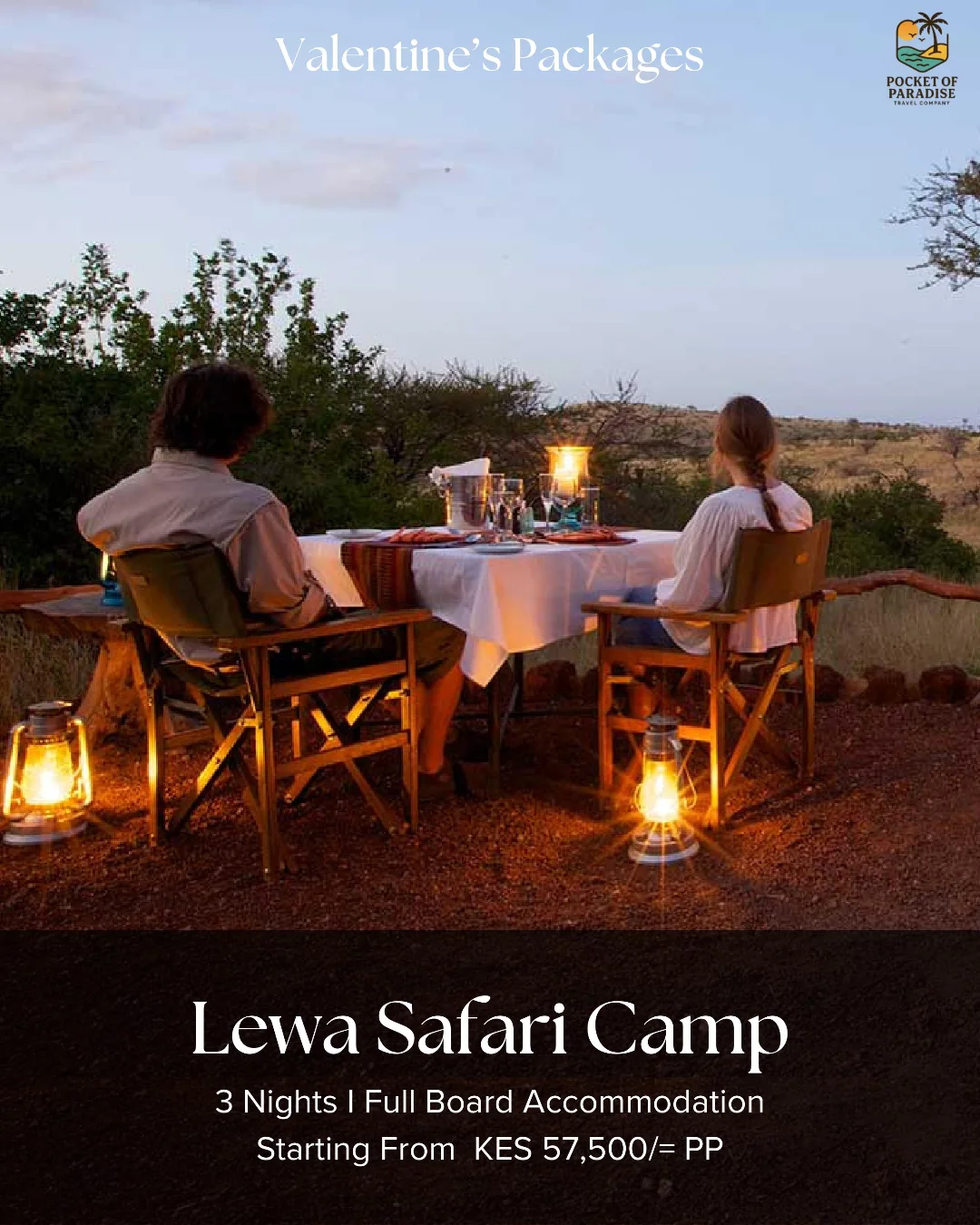 Love is a safari, wild and free. Under the African sky, our hearts beat as one.Sunset serenades and safari dreams. There’s no better place to get lost with you. A dinner to remember in the heart of the wild. Lewa, you have our hearts. Trading city lights for lantern-lit nights and starry skies. Book your romantic escape getaway today with Pocket of Paradise